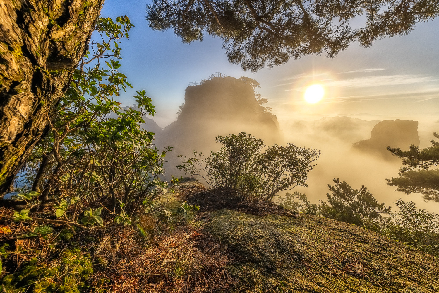 가방을 카메라에 집어넣는 순간 동쪽에서 순간적으로 밀려오는 운해을 담았습니다.