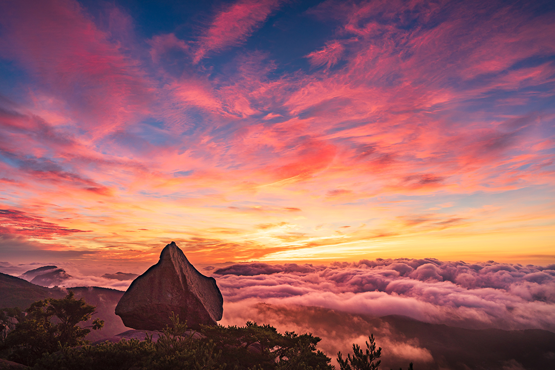 높은 운해가 밀물처럼 두세번 빠졌다 들이닥쳤다 하더니 여명 때가 되어