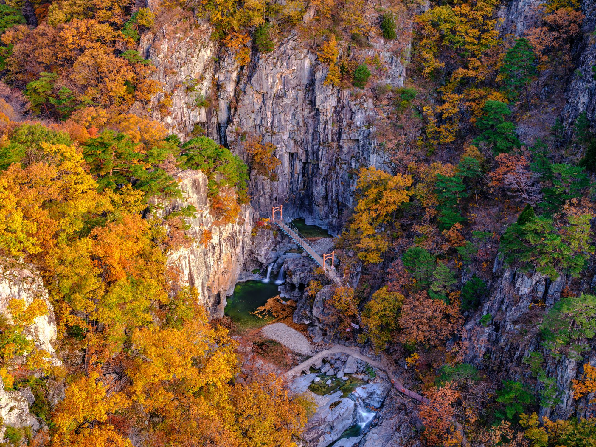 위에 물줄기 2개가 있는 폭포가 관음폭포이고, 하단부의 자그만 폭포는 잠룡폭포 입니다.
